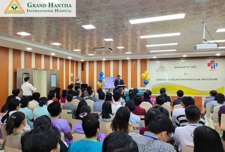 Grand Hantha International Hospital နှင့် JIMCO (Japan International Medical Cooperation Organization) တို့ ပူးပေါင်းကျင်းပသည့် Seminar of Neuroendovascular Procedure နှင့် Seminar of EMG ပွဲ၏ မှတ်တမ်းပုံရိပ်များ ကိုမျှဝေပေးလိုက်ပါသည်။ ပွဲအခမ်းအနားကို ဦးနှောက်အာရုံကြောခွဲစိတ်ကုပညာဆရာဝန်ကြီး ပါမောက္ခဦးမြတ်သူနှင့် ကိုယ်အင်္ဂါပြန်လည်သန်စွမ်းရေး ဆေးပညာဆရာဝန်ကြီး ပါမောက္ခဒေါ်သန်းသန်းဌေး တို့မှ အဖွင့်အမှာစကားပြောကြားပေးခဲ့ကြပါသည်။ပွဲအခမ်းအနား အမှတ်တရ ဓာတ်ပုံများကိုဖော်ပြပေးလိုက်ပါသည်။